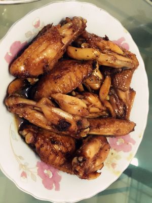 加入酱油不断的翻滚煮到香味为止,再把可乐倒入鸡翅中(淹没为止)盖上盖子,随时留意锅里可乐的情况,等可乐煮到鸡翅之下就可以出锅了!(可以适当的放点鸡精调味)