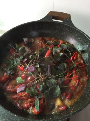 开大火放小龙虾爆炒,酱油上色,盐根据自己口味调味,十三香画龙点睛。