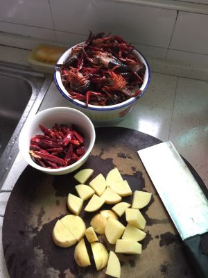 小龙虾洗干净,土豆切成一厘米厚的土豆片。