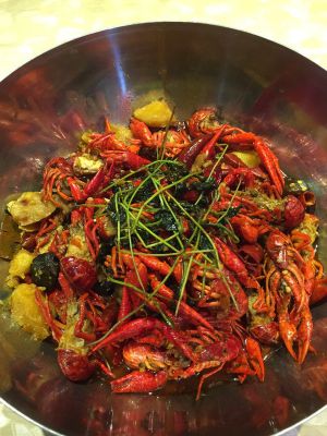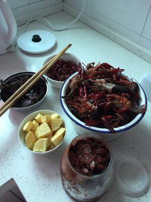 炒至小龙虾变色后加入配菜翻炒一会,然后加入适量开水煮10分钟左右,中途可以尝尝小龙虾是否入味,不入味可以增加煮的时间。
