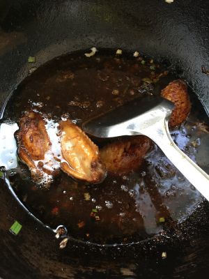 焖一会儿后倒入可乐,直至没过鸡翅。用中小火焖开可乐之后加一点点盐,转用大火收干汤汁。待汤汁粘稠快干时起锅,装盘撒葱花即可!