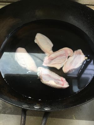 鸡翅洗净冷水入锅 加入姜片和料酒煮两分钟