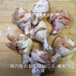 葱姜蒜 少许料酒 生抽抓匀 腌制半小时以上
