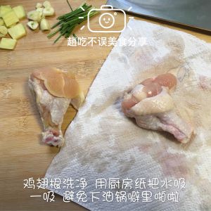 鸡翅根洗净用厨房纸吸一吸 避免下油锅噼里啪啦