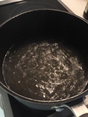 水开,水里放少许盐,之后放泡软的粉丝(我的粉丝泡了四个小时),煮到透明。
