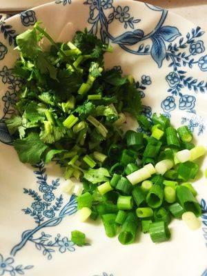 香菜、香葱切末备用。