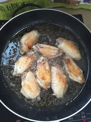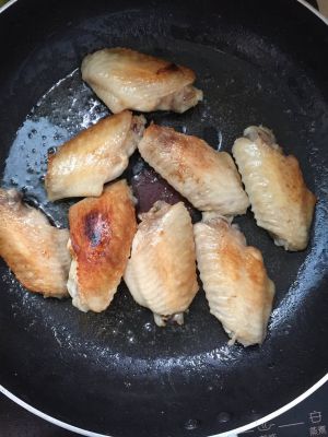 锅放少许油 鸡翅沥干水分煎至两面金黄