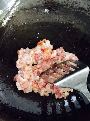 放入猪肉肉末爆香