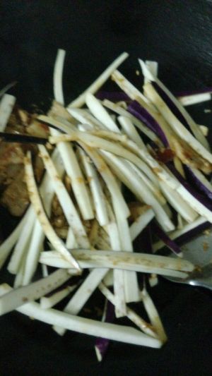 倒入茄子翻炒。