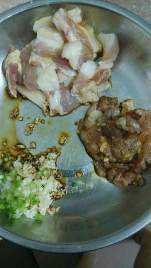 准备材料。肉切好放生抽腌一会。