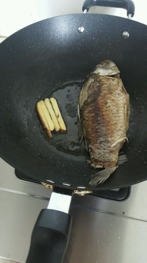 热锅,少量油(有猪油最好,没有的话其他油也可以)加热后放入一半姜片煎一下捞出,放入鱼