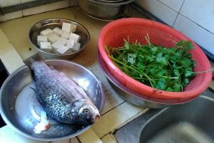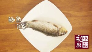 ▲鲫鱼洗净后,把鱼肚子里的黑色膜撕干净,否则容易腥的。