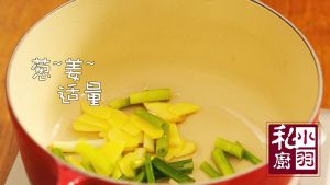 ▲然后加滚开的开水,这样煮出来的汤才能是奶白色,切忌千万不能倒凉水。大火把水烧开,然后转小火煮。