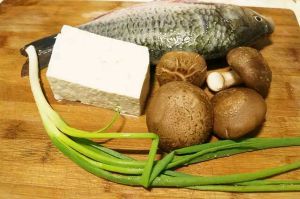 鲫鱼杀好以后拿回家,肚子里面的黑膜洗净,去掉鱼腥线,外面要用刀逆着多刮几遍,刮去表面的脏东西,香菇跟豆腐准备好.