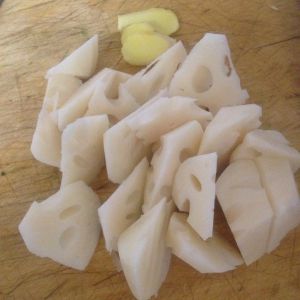 放入莲藕和姜片。