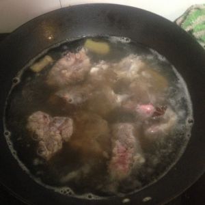 放入没过排骨的开水,要一次性加足水。