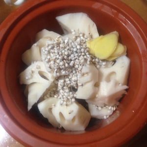 放入藕、薏仁、姜片