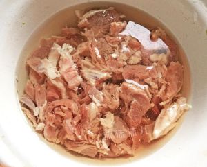 切好的羊肉片在水里浸泡若干小时,泡出血水。中途要换几次水。