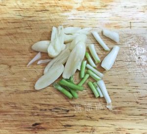 蒜切片,葱切段。