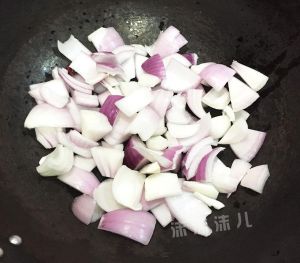 锅中放适量油,油热后放入切好的洋葱块大火翻炒。
