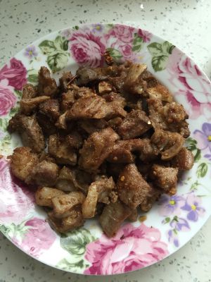 锅上火,油热放入羊肉,羊肉变色后,放入盐、老抽、孜然粒出锅。