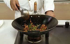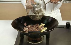 炒至羊肉变色,加少许料酒、适量盐调味。