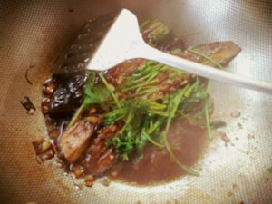 放入茄块儿,加盐,十三香,鸡精等调味,炒匀后可出锅