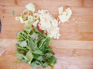 葱姜切段,香菜切段,蒜切成蒜蓉