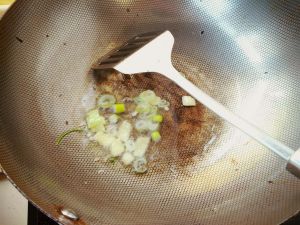 另起锅,锅中放入少许油烧热,放入葱姜蒜末爆香。