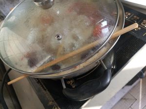 再次把筷子放在汤锅的边缘,并盖上盖子,煮到萝卜熟透,就可以关火