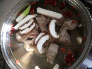 (1)汤锅中加入适量的清水,并把“步骤一”的食材放入锅中,开大火煮至沸腾并再煮2-3分钟; (2)稍微把火调小两格用筷子捞出排骨装盘备用(ps:不光火捞出排骨可以很好的避开浮沫) (3)把锅里的水倒掉并洗干净,再次装入适量的清水备用