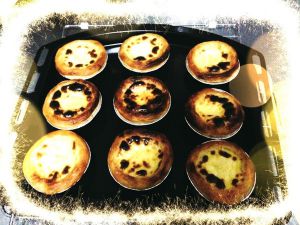 烤箱预热,将蛋挞放入烤箱中层,200度烤20分钟……