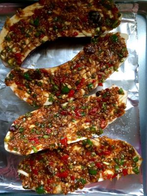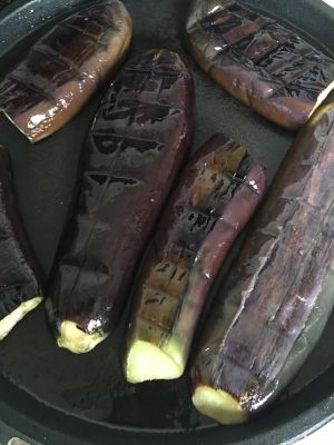 茄子划开抹上少许盐(为了让茄子更加入味)