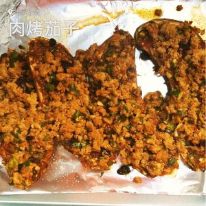 上下火200度左右,预热5分钟。然后烤箱中层放入茄子调25分钟,差不多20分钟的时候把茄子拿出来,铺上肉沫继续烤。完成~