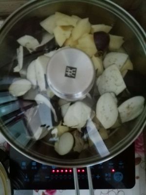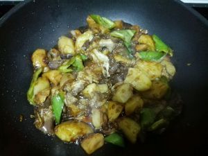 茄子煎一下,然后放入土豆,最后焖锅。就好啦。
