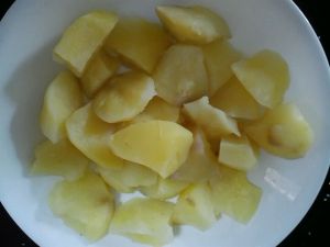 土豆放入微波炉加热三分钟,每家微波炉功率不同自己掌握,看一下土豆外表变干就可以了。拿出备用。