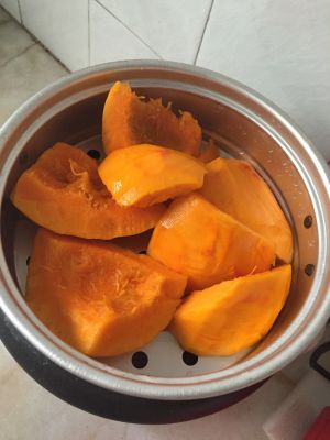 南瓜削皮洗净,上锅蒸