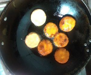 揉圆圆的面团 然后压扁直接放油锅煎 小火大概煎个半分钟到一分钟 反面同样时间 基本上表面金黄就可以了