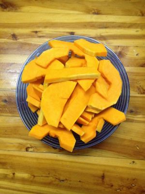 南瓜去皮切片,最好不要太厚,好蒸熟了。