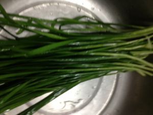韭菜用搅拌机榨汁,抓一团和好的南瓜泥放入韭菜汁揉捏,呆会做南瓜蒂用。