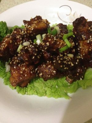 炸过小排的锅倒出油,放入葱姜爆香,下排骨,下备好的酱料焖到开始收汁,出锅前淀粉勾芡。