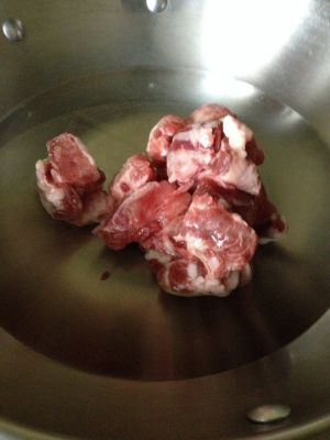 炒锅哪放入适量的油,油热后倒入排骨,用小火慢慢煸炒,炒至排骨表面金黄。