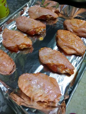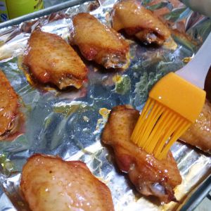 ☞烤箱200℃,把鸡翅码在烤盘上两面刷上蜂蜜水放入烤15分钟,拿出来翻面刷上蜂蜜水烤15分钟,翻面刷蜂蜜水烤10分钟,再翻面刷蜂蜜水烤10分钟(时间是2个15分钟、2个10分钟,每次翻面必须刷蜂蜜水) ☞微波炉中高火,步骤一样(时间是2个10分钟、2个7分钟) ☞各家的烤箱和微波炉都不一样,我给的时间可以参考,还得依据自家的电器调整时间
