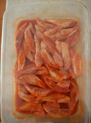 用奥尔良烤翅粉拌匀,放冰箱冷藏5小时