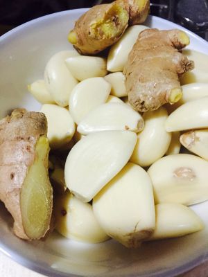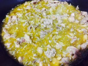 待鸡肉腌好之后,开中火倒油,放入姜丝和花椒煸炒出香味(花椒的量为女生的手抓一大把)