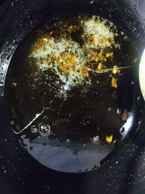 重新起锅,少许油,加葱姜,干辣椒,花椒炝锅