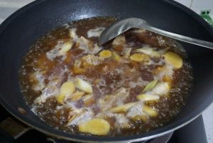 加入适量醋,生抽和老抽,调制小火慢炖四十分钟