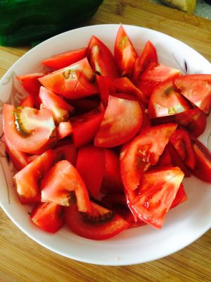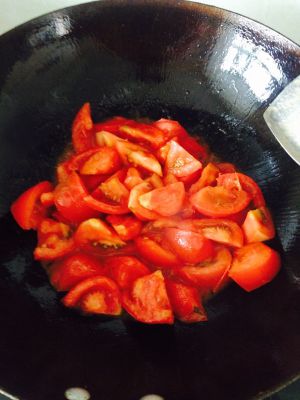 锅内放一点点油 然后放入番茄翻炒 也有人喜欢先加水再加番茄和牛肉 我觉得先炒一下更加有味