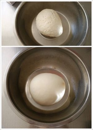 用筷子搅拌成絮状,揉成团。盖上保鲜膜放在温暖处发酵之两倍大
