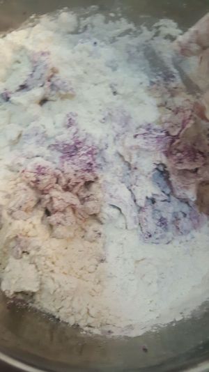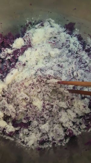 在面粉中放入蒸好的南瓜和其他材料,揉好发酵2小时